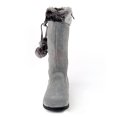 モモ グロウ「エラ」スタイルのブーツは、ポンポンの飾りと折り返しのフェイクファーをあしらった、クラシックなデザインのニーハイ ブーツです。側面にあるファスナー付きの履き口で、簡単に着脱することができます。防寒仕様の内部は、お子様の小さな足指を暖かく包み、弊社のユニークなモモ トレッドが、滑りやすい氷の表面でもバランスを取りやすくします。