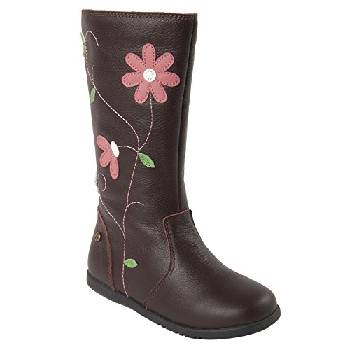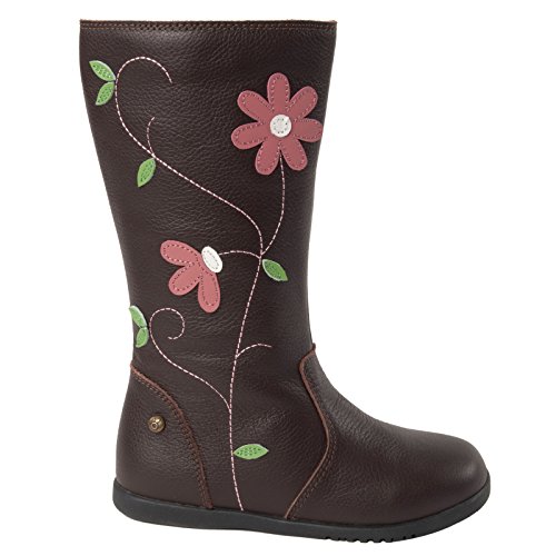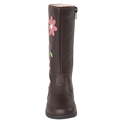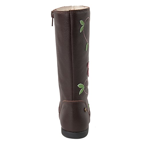 モモ グロウ「ジュリア」スタイルのブーツは、美しく楽しいブーツです。 このレザー製ニーハイ ブーツの側面には、蔓に咲く可愛らしい花が縫い付けられています。側面にあるファスナー付きの履き口で、簡単に着脱することができ、弊社のユニークなモモ トレッドが、滑りやすい氷の表面でもバランスを取りやすくします。