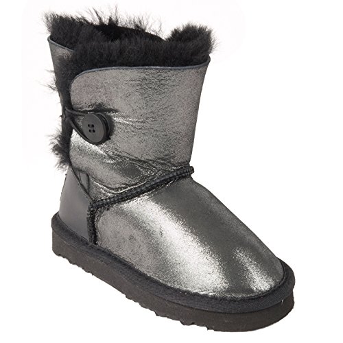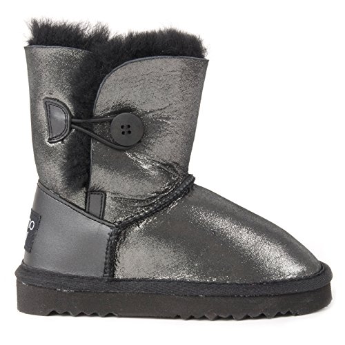 モモ グロウ 幼児/キッズ用「デイジー」ボタン付きショート シアリング ブーツ ブラック 米国幼児用サイズ8 (インポート)