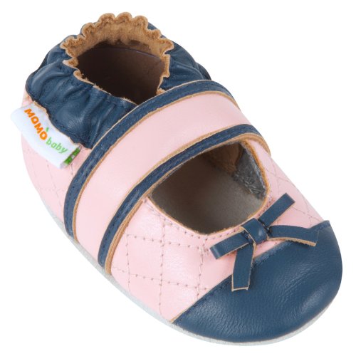 モモベビー乳幼児/トドラー キルト メリージェーン ピンクソフトソールレザーシューズ ネイビー 18-24 ヶ月/6-7 M 米国トドラー (インポート)