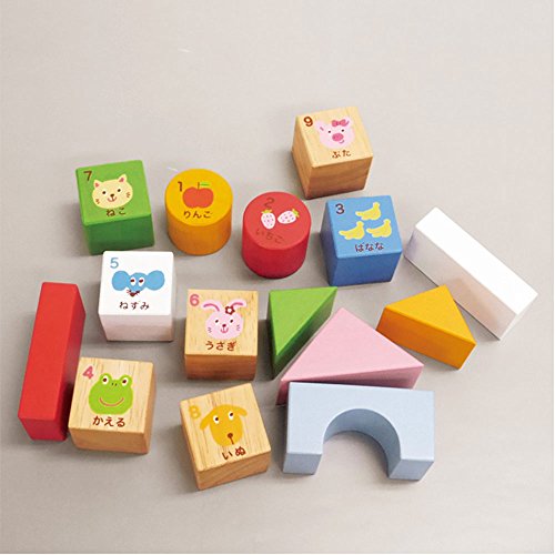 天然のゴムの木で出来た15個のパーツ。片面にイラストがそれぞれプリントされています。