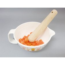 おろす、しぼる、すりつぶすなど、赤ちゃんの離乳食を簡単に調理できるセットです。すり鉢の底にはすべり止めが付いています。