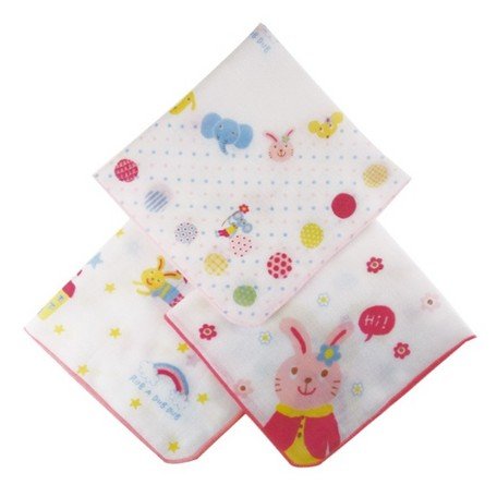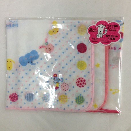 301052/RUB A DUB DUB/R.ベビー3枚組ガーゼハンカチ「ピンク」/モンスイユ/ラブアダブダブ/キッズ/ベビー/アニマル/ハンカチ/ガーゼ/3枚組