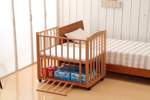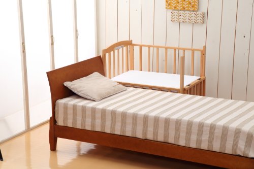 ベッドの前枠だけでなく右側面も開閉できるので、おむつ替えのときや寝かしつけの時にとっても便利。