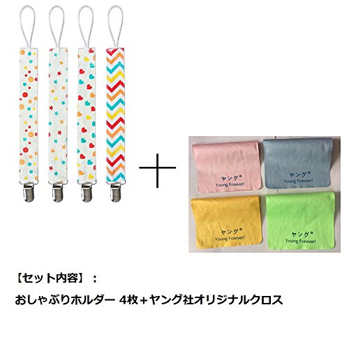 - 【セット内容】: おしゃぶりホルダー 4枚+ヤング社オリジナルクロス