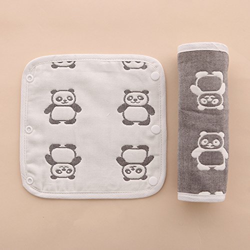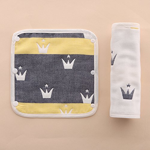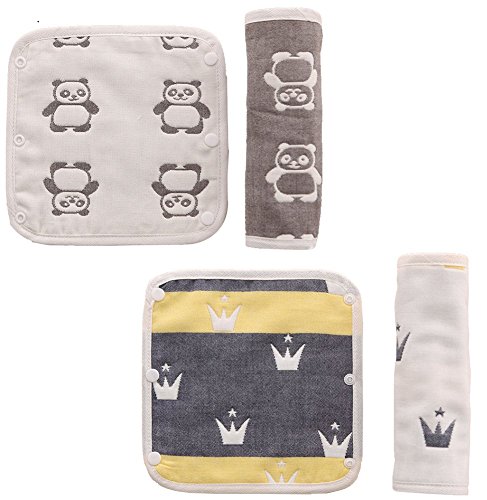 ヤング(Young) 抱っこひも用よだれカバー 4枚セット 可愛い パンダ 王冠柄 ユニセックス スナップ式 綿100% 6重ガーゼ 多機能 ベビーカー ベビーキャリア チャイルドシート ショルダーベルト よだれパッド クロス付け