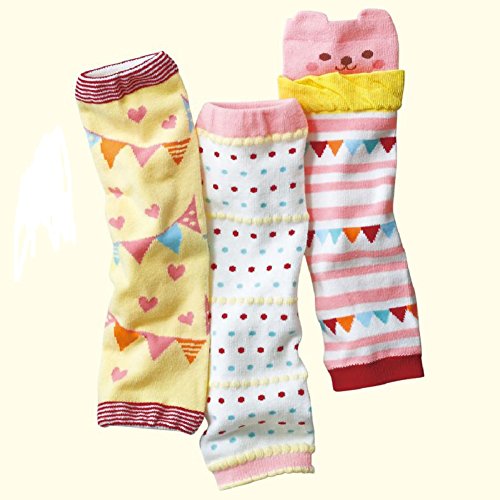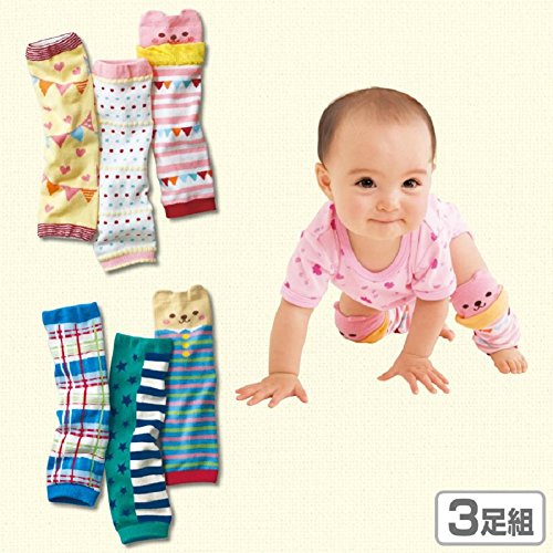ヤング(Young) ベビー レッグウォーマー 3足 セット 綿 ハイハイ 膝当て ニーパッド 出産祝い 冷房対策 膝保護 日焼け対策 3柄選択可 (Bセット)