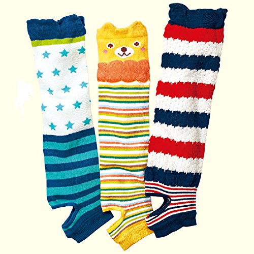 ヤング(Young) ベビー レッグウォーマー 3足 セット 綿 可愛い 男の子 ハイハイ 膝当て ニーパッド 出産祝い 冷房対策 膝保護 日焼け対策 (A)