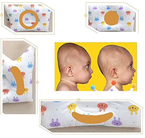 ヤング(Young) ベビー 枕 王冠まくら 超可愛い 2柄 快眠 無添加 綿100% ドーナツ型 向き癖 絶壁予防 汗とり 赤ちゃん 低反発ピロー 新生児 出産 祝い プレゼント クロス贈る (バニー)