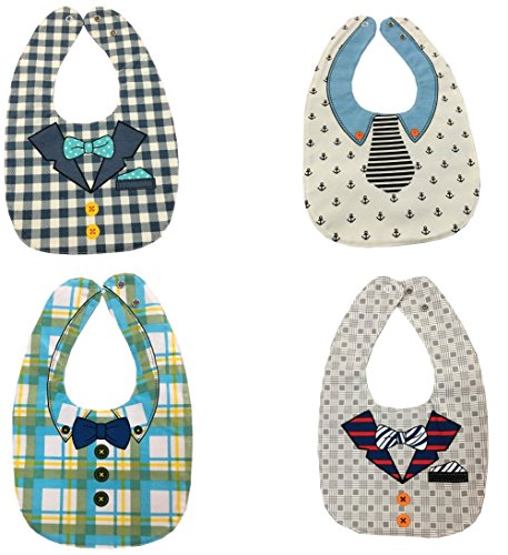 ヤング(Young) スタイ ベビー ビブ 上質 フォーマル おしゃれ 4枚セット 防水 肌に優しい 綿 4層厚さ 新生児~5歳 サイズ調整可 食事 エプロン 子供 出産祝い 保育園用 家用 クロス付け (4枚セット(男の子))