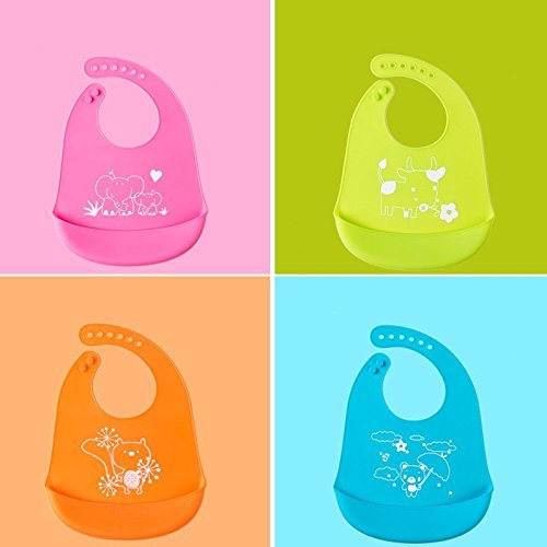 ヤング(Young) ベビー お食事エプロン 4点セット 防水 立体ポケット 折り畳み 携帯便利 簡単に洗える ソフト スタイ シリコン 4ヶ月 6歳 クロス付け