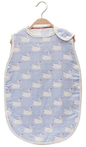 ヤング(Young) ベビー スリーパー 6重 ガーゼ オールシーズン用 オシャレ 全9柄選択可 ふわふわ コットン ボタン開閉式 寝冷え防止 40*60 cm (白鳥-ブルー)