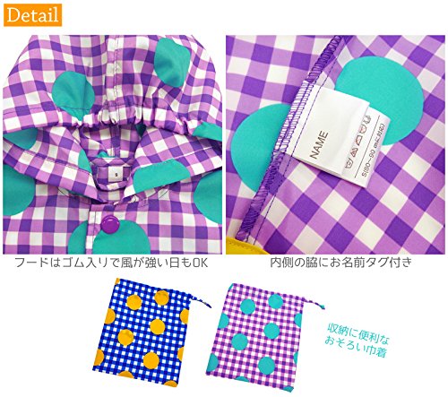 急な雨にも便利なポンチョタイプのレインウェア☆ 小さなお子様にもササッとお出かけ準備OK、楽々ポンチョです。 *大きめゴム入りフードで雨風をばっちりガード! *共布バッグ付きで、携帯便利!! *ポップなカラーは雨の日もオシャレに目立つ♪