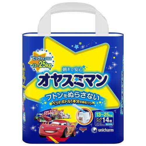 まるで下着のようなドット柄を採用、昼間のオムツを卒業したお子様もお気に入りです。パワフル吸収体を採用しているので、一晩中のおしっこも安心です。