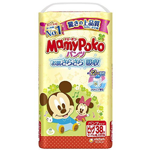 ●【商品説明】●「マミーポコパンツ ビッグサイズ 38枚」は、驚きの上品質なのに、お手頃パンツです。●繰り返しのおしっこを閉じ込める「さらさらたっぷり吸収体」と、しめった空気を外に逃す「さらさらエア通気シート」でお肌はいつもさらさら。●最大12時間分のおしっこをらくらく吸収。●※1ユニ・チャーム独自の高吸水性ポリマーを搭載した『たっぷり吸収体』だから、長時間遊んでもモレ安心。●新改良「やわらかベルト」採用により、やわらかさUP、赤ちゃん快適。●(脇破りも改良)●特許技術※2「サポートギャザー」を搭載した「しっかりフィット構造」が体にフィットしてスキまモレ安心。●BABY MICKEYデザインコレクション 「ベビーミッキー」がかわいい、デザインおむつ。●かわいいデザインは1袋に5種類入っているので、楽しくおむつ替えできます。●(C)DISNEY●「まるめるテープ」で、簡単かつ衛生的に使用後の処理ができます。●体重12-17kgのお子様に。●※1赤ちゃんのおしっこ量には個人差があります。●※2足まわりの2つのギャザーの根元にあるサポートギャザーが胴回りのギャザー...
