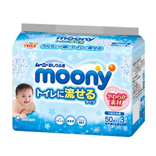 ムーニー おしりふき トイレに流せるやわらか素材 替 50枚 【12個(3個入×4パック)セット】