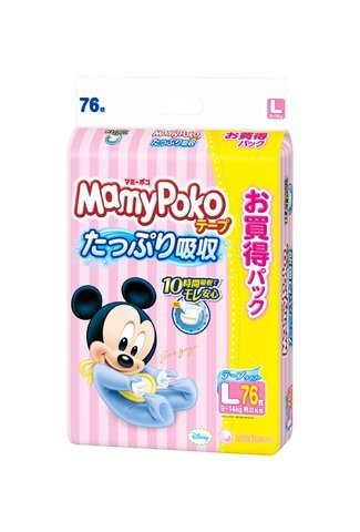 独自の高吸収性ポリマーで、10時間分のおしっこをらくらく吸収するモレあんしんおむつです。「やわらかレッグギャザー」が股のすきまにピッタリフィットするから、ゆるゆるウンチをせきとめます。かわいいディズニーキャラクターデザインおむつが1袋に10種類。