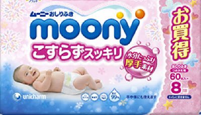 - 商品名:[ユニチャム ムーニー おしりふきこすらずするりんっ詰替 60枚×8 ] が