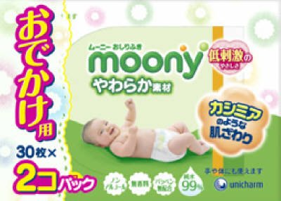 【ベビー用品】ユニ・チャーム ムーニー おしりふき やわらか素材 おでかけ用 30枚×2個パック(計60枚) ノンアルコール・無香料 ※商品パッケージは予告なく変更あり×20点セット (4903111215980)