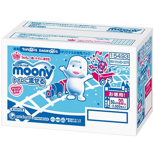 ムーニーおしりふき トイレに流せるやわらか素材 詰め替え用 50枚×20個パック(1000枚)