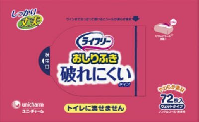 ユニ・チャーム ライフリー おしりふき 破れにくいタイプ 72枚入×12点セット (4903111404544)