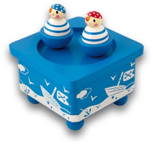 This delightful music box has two magnetic dancing pirates on top.;This wind up music box plays the tune The merry widow waltz;A well made and classic wooden toy;The perfect gift;Your child will love being able to set this wonderful pirate music box in motion,