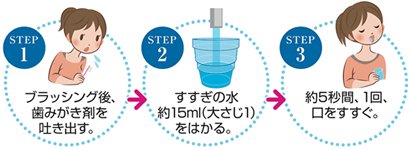 3.ブラッシング後、軽く吐き出し、1回だけ洗口します。