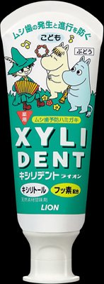 パッケージデザインをリフレッシュ。人気のスナフキンも加わりました。人気のぶどうの香味。ムシ歯の原因となる「酸」の生成を抑制し、乳歯や生えたての永久歯をムシ歯から防ぎます。