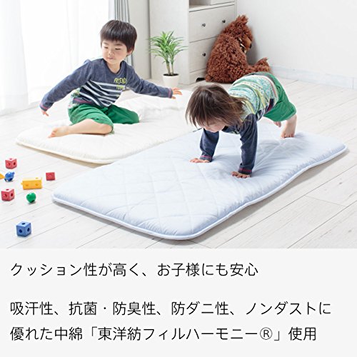 NASAで使用するグローブ用に開発された素材、アウトラスト(R)を使用したお昼寝マットです。アウトラスト(R)とは、人間が一番快適だと感じる肌の表面温度(31℃~33℃)にコントロールする温度調整機能素材です。暑い夏にはひんやり快適、冬にも快適に使用できます。(日本の気候では夏場の方が効果を実感できます)アウトラスト社の最高基準シート「ゴールドラベル」認定商品を使用しています。海外生産品に比べ、薬剤(マイクロカプセル)がシートに多く付着している為、効果は絶大です。中綿には、吸汗性・抗菌防臭性・防ダニ性などに効果を発揮する「東洋紡フィルハーモニー(R)」を使用。ご家庭で丸洗いできます。安心・安全な品質を保証する日本国内完全生産品。小さなお子様のお昼寝用のマットとして最適です。