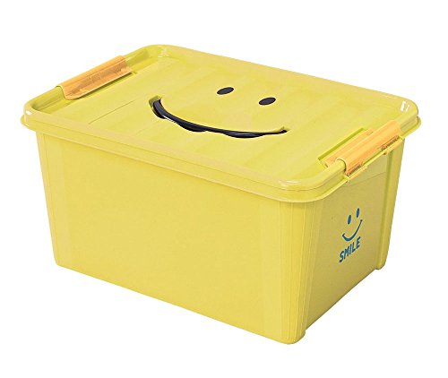 - にっこり笑顔がかわいいフタ付き収納、スマイルボックス!イエロー。
