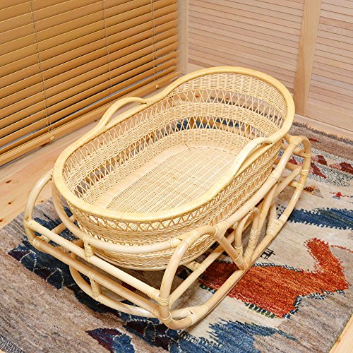 赤ちゃんに優しい、籐製のゆりかご。 日本では最高級ラタンとして、有名なメーカーのヨーランです。 素材にこだわり、自然、人にやさしいかごです。 昼間、赤ちゃんのお昼寝用のベッドとしてリビングに置いてもいいですね♪ 通気性に優れているので暑い季節や暖房の時期も 赤ちゃんを寝かせてもスヤスヤ寝てくれます。 バスケット部分の編み模様も可愛いです。 [ゆりかご]として使える状態と、[ベビーベッド]としてお使いいただける状態に固定も出来ます。 さまざまな検査(ホルムアルデヒド)をしている かごなので、赤ちゃんも安心ですね♪ 出産祝いやお孫さんへのプレゼントに喜ばれると思います。 メーカー直送の商品です。 ※申し訳ございませんが、特別便の為 代引きでのお支払いはできません。 籐製 ゆりかご-小 布なしの詳細 -サイズ- W:92 D:55 H:52cm かご内寸 W:75 D:43 H:21cm 大きな商品となりますので、サイズのご確認をいただき、ご注文をお願いします。 インドネシア製 ラタン(籐)