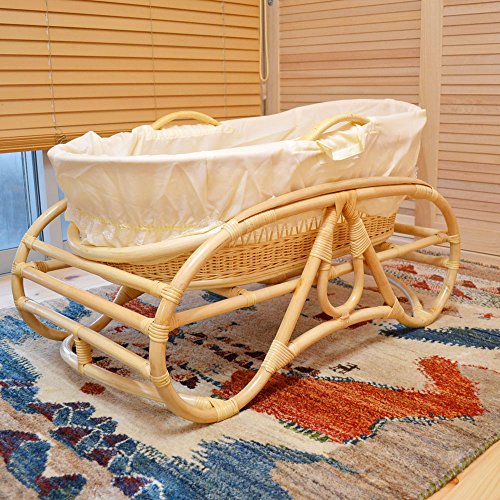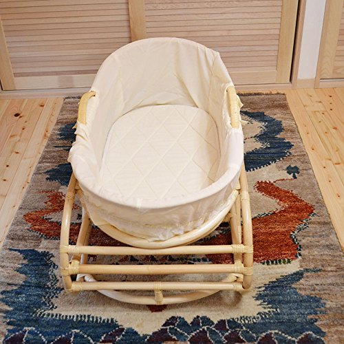 赤ちゃんに優しい、籐製のゆりかご。 日本では最高級ラタンとして、有名なメーカーのヨーランです。 素材にこだわり、自然、人にやさしいかごです。 昼間、赤ちゃんのお昼寝用のベッドとしてリビングに置いてもいいですね。 通気性に優れているので暑い季節や暖房の時期も 赤ちゃんを寝かせてもスヤスヤ寝てくれます。 バスケット部分の編み模様も可愛いです。 [ゆりかご]として使える状態と、 [ベビーベッド]としてお使いいただけるように固定も出来ます。 さまざまな検査(ホルムアルデヒド)をしている かごなので、赤ちゃんも安心ですね。 出産祝いやお孫さんへのプレゼントに喜ばれると思います。 ※申し訳ございませんが、特別便の為 代引きでのお支払いはお選びいただけません。 籐製 ゆりかご-小 布付きの詳細 -サイズ- W:92 D:55 H:52cm かご内寸 W:75 D:43 H:21cm 大きな商品となりますので、サイズのご確認をいただき、ご注文をお願いします。 インドネシア製 ラタン(籐)