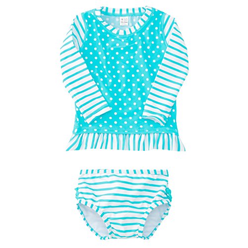 RUFFLE BUTTS ラッフルバッツ 長袖 ラッシュガード ビキニ 水着 ベビー キッズ スイムウエア (サイズ:12-18m、カラー:Aqua Striped) [並行輸入品]