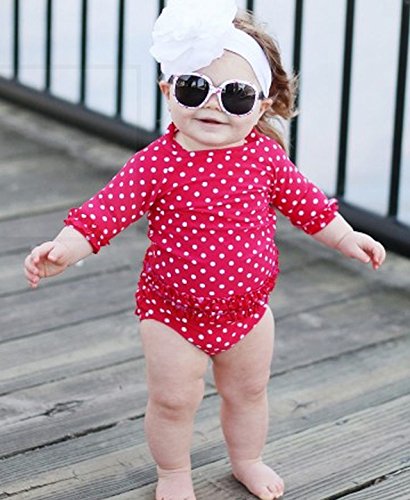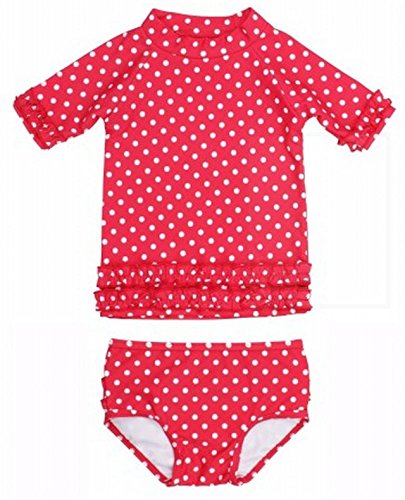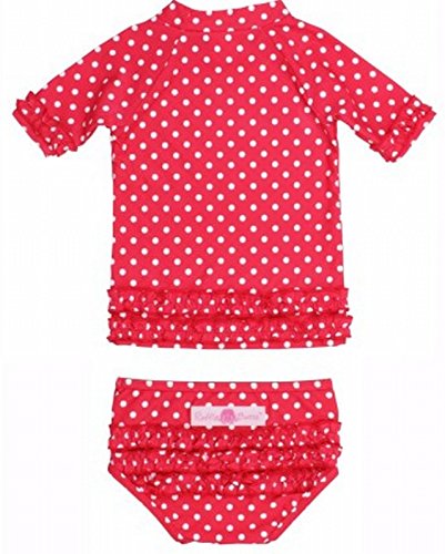 RuffleButts ラッフルバッツ水着 UPF50+ ラッシュガード Polka Dot Ruffled Rash Guard Bikini (12-18m(75cm), Red(レッド)) [並行輸入品]