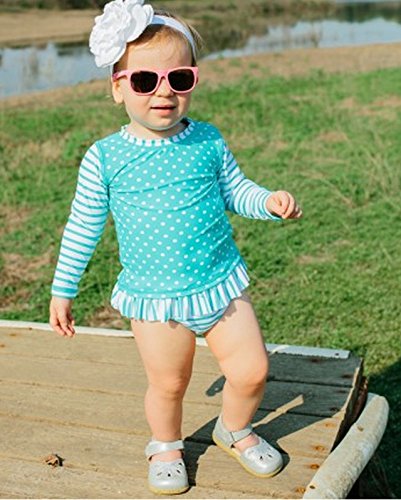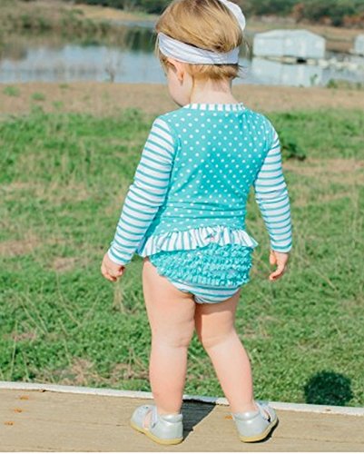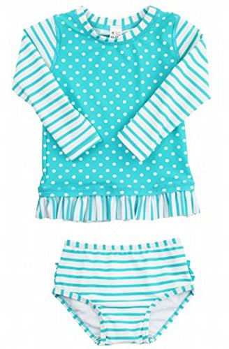 ラッフルバッツ ストライプ柄 長袖 ラッシュガード ビキニ 18カ月-24カ月(80cm) Aqua (アクアブルー) [並行輸入品]