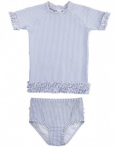 RuffleButts ラッフルバッツ ラッシュガード水着上下セット ブルーストライプ (12-18m(70-75cm)) [並行輸入品]