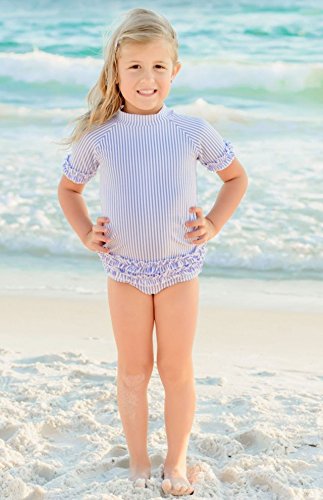 - 上品な印象のシアサッカー柄のRuffle Butts(ラッフルバッツ)半袖ラッシュガードです。
