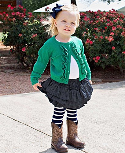 RuffleButts ラッフルバッツ 足首までのカラータイツ 足首にフリル付き (ネイビーストライプ, 12-24month) [並行輸入品]