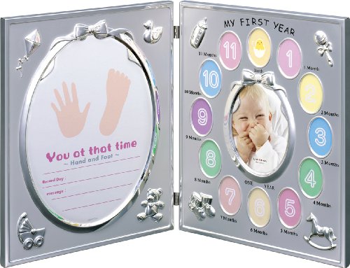 ●商品説明:誕生から1歳までの写真を3ヶ月ごとに飾ることができるベビーフレームです。手形・足形を飾ることができます。