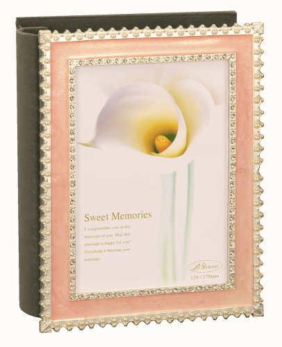 永遠の愛のメモリアル、ラドンナのブライダルフレーム。チェコ製のクリスタルと乳白色のパール調ビーズをあしらった淡いピンクのアルバムフレームは、結婚のお祝いにもぴったり。ポストカード判・Kサイズ×80。置き専用。カラーはピンク。外寸:140×179mm、内寸:102×154mm、窓寸:96×135mm、フレーム:ポストカード判1枚。材質:亜鉛合金、エポキシ、チェコ製クリスタル、パール調ビーズ。