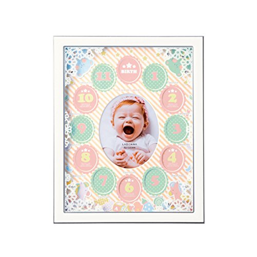 「ラドンナ ベビーフレーム MB79-130」は、お誕生から1年間の成長を月ごとに飾れる12ヶ月ベビーフレームです。フレームの四隅はレースのプリントとキラキラしたクリスタル。性別を問わずにお使いいただける優しい色使い。 製品仕様 外寸:211×261mm