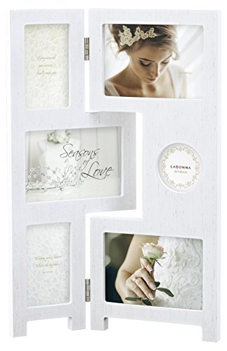 ◆白い木目が美しいブライダルパーテーションフレーム。 / ■ 仕 様 ■収納サイズ:L判×3、ミニサイズ×3 外寸:233×346 内寸:129×91×3コ、68×103×2コ、67×67 窓寸:114×76×3コ、52×88×2コ、φ52 主な材質:ベニヤ、MDF /