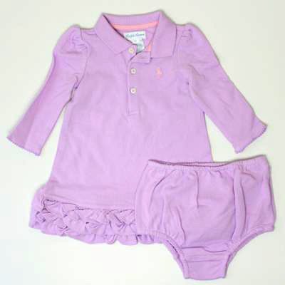 【RALPH LAUREN】ラルフローレン LongSleevedPoloDress 長袖ポロドレス カラー:パープル ●6M(3-6ヶ月)日本サイズ60 身長:59cm~66cm 体重:6~7kg 実寸:肩幅16,5cm、袖丈23cm、身丈38cm ●9M(6-9ヶ月)日本サイズ70 身長:67cm~72cm 体重:7~8,5kg 実寸:肩幅18cm、袖丈25cm、身丈40cm 素材:100%COTTON ブルマ付