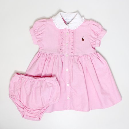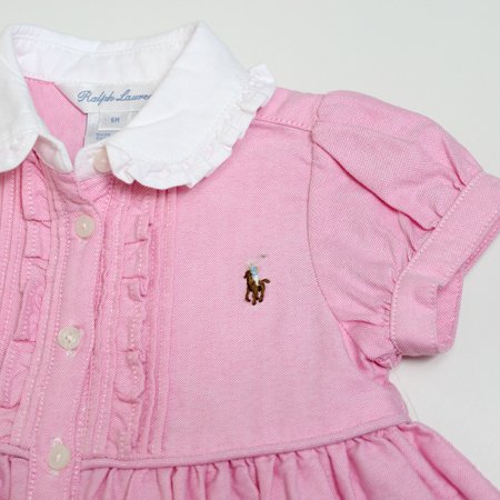 【Ralph Lauren】ラルフローレン Cotton Oxford Shirt Dress オクスフォードシャツドレス ●サイズ:6M(3-6ヶ月)日本サイズ60 身長:60cm~68cm 体重:6~8kg 実寸:肩幅約17cm身幅約24cm着丈約38cm袖丈約9cm ●サイズ:12M(9-12ヶ月)日本サイズ80 身長:72cm~78cm 体重:9~11kg 実寸:肩幅約19cm身幅約26cm着丈約45cm袖丈約10cm カラー:ピンク 素材:100%COTTON ブルマ付