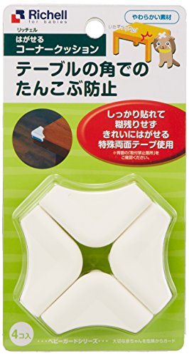 ●【商品説明】●「リッチェル はがせるコーナークッション 4個入」は、テーブルの角でのたんこぶを防止するコーナークッションです。●赤ちゃんを危険から守った後は、スッキリ取り外し。●しっかり貼れてキレイにはがせます。●衝撃を吸収するやわらかい素材を使用。●【使用上の注意】●お子様は思わぬ動作をしますので、必ず保護者の目の届くところで使用してください。●この商品は、お子さまの思いがけない事故やケガなどを防ぐようにしたものですが、保護者の方の注意と配慮に代わるものではありません。●用途以外での使用は避けてください。●【材質】●TPE樹脂●【原産国】●中国●【お問い合わせ先】●株式会社リッチェル お客様相談室電話 076-478-2957(受付時間:土日、祝祭日を除く平日9:00-17:00)●まとめ買いの場合、システムの仕様で個数分の送料が加算される場合がありますが、送料は1配送先につき1個分の金額となります。●システムの仕様で配達日を指定出来る場合がありますが、配達日の指定は出来ませんのでご了承ください。尚、時間指定は出来ます。●ご注文確定後のキャンセルな...