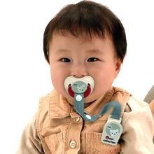 口から離れたおしゃぶりを落とさず、ママ安心!