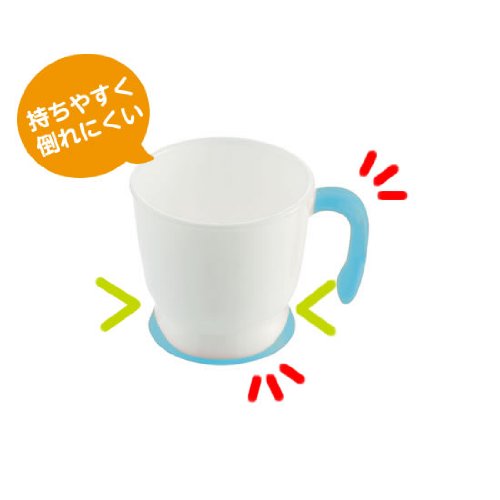 「NDはじめての片手カップ」は、すべりにくくやわらかい素材、エラストマーを採用した、お子様に持たせるのに最適な食器です。
