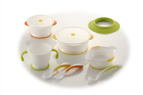 ・セット内容:離乳食お茶わん(レンジフタ付)・離乳食ボール(レンジフタ付)・はじめての両手カップ・にぎにぎスプーン・フォーク・離乳食取り分けすり皿・離乳食スプーン・食器用吸盤