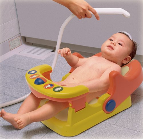 ●赤ちゃんのお肌にやさしいふんわりマット付きのバスチェアです。