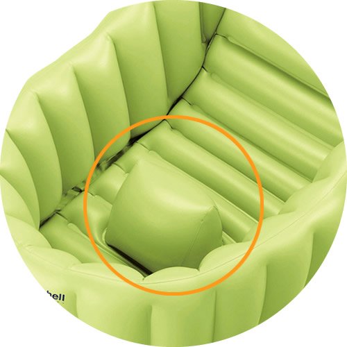 また、赤ちゃんの成長に合わせて、ストッパーの空気を抜いて使うこともできます。(特許取得済)